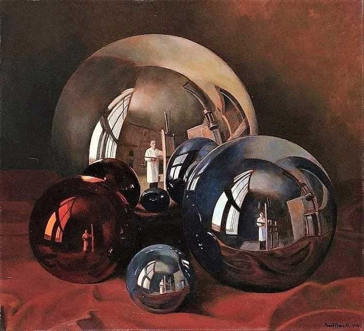 Anche il Caravaggio in Marta e Maria Maddalena e Giovanni Bellini in Allegoria della prudenza o della vanità includono nei loro dipinti lo specchio convesso.